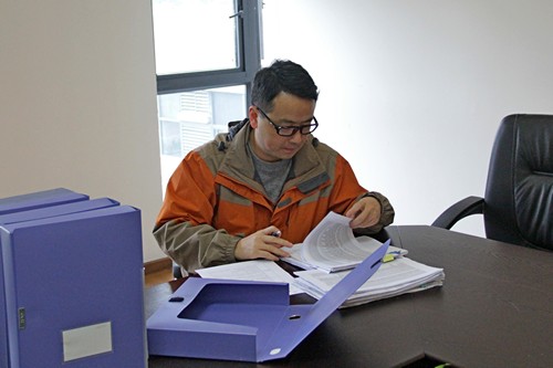 检查组认真查阅资料
