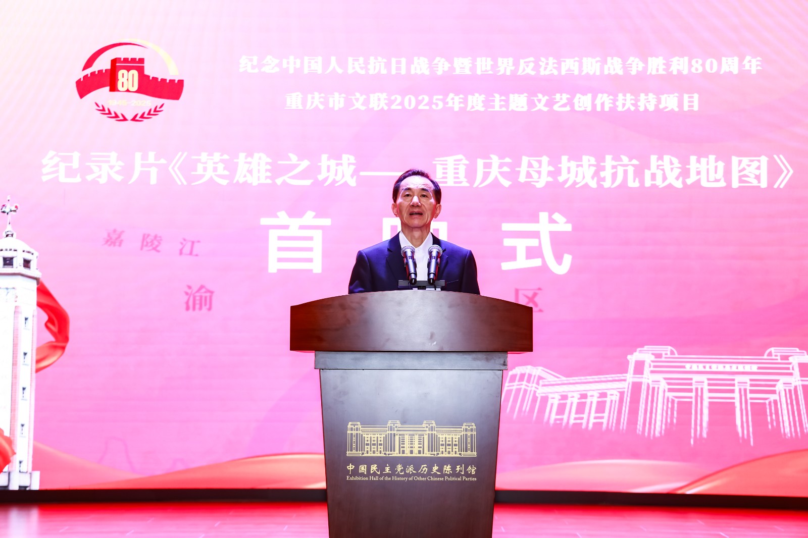 为纪念中国人民抗日战争暨世界反法西斯战争胜利80周年,2025年11月6日,纪录片《英雄之城——重庆母城抗战地图》首映式在中国民主党派历史陈列馆隆重举行。我校作为协助拍摄单位参与影片创作,梁挺副校长任拍摄顾问,徐永恒副校长出席首映式。