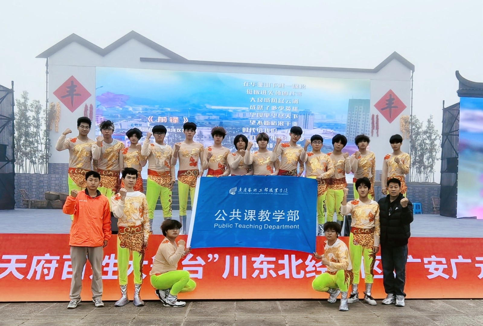 2025年11月13日,由四川省文化和旅游厅携手广安市人民政府共同主办的四川省“天府百姓大舞台”川东北经济区(广安·广元)片区文艺汇演在广安市广安区盛大启幕。此次展演活动以群众文艺展演为桥梁,旨在深度推动川东北片区文化振兴与区域协同发展。我校公共课教学部党支部精心组织校舞龙队作为特色体育项目惊艳亮相此次活动,以党建引领体育教学创新,为活动增添了一抹亮丽的色彩。