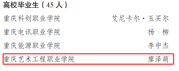 我校杰出校友廖泽萌再获殊荣,荣获“重庆市2024—2025年度高校毕业生基层就业卓越奖”!