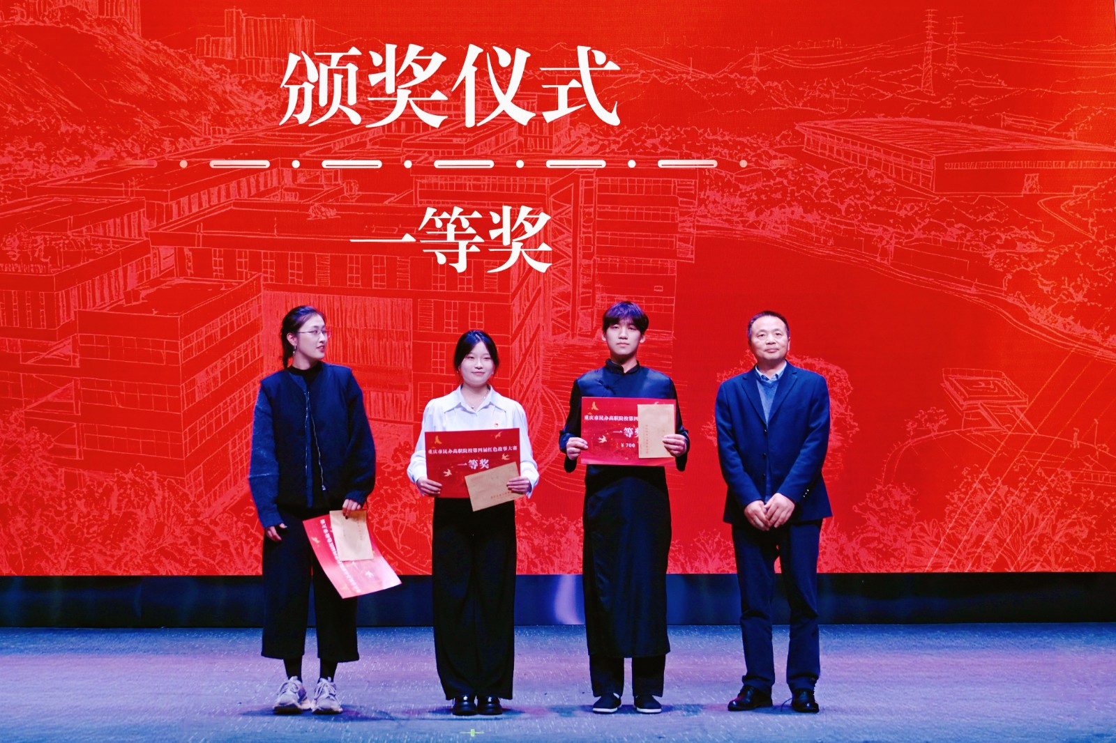 重庆健康职业学院《觉醒年代》、重庆海联职业技术学院《刘老庄连八十二烈士》、重庆理工职业学院《青春与呐喊》获一等奖。