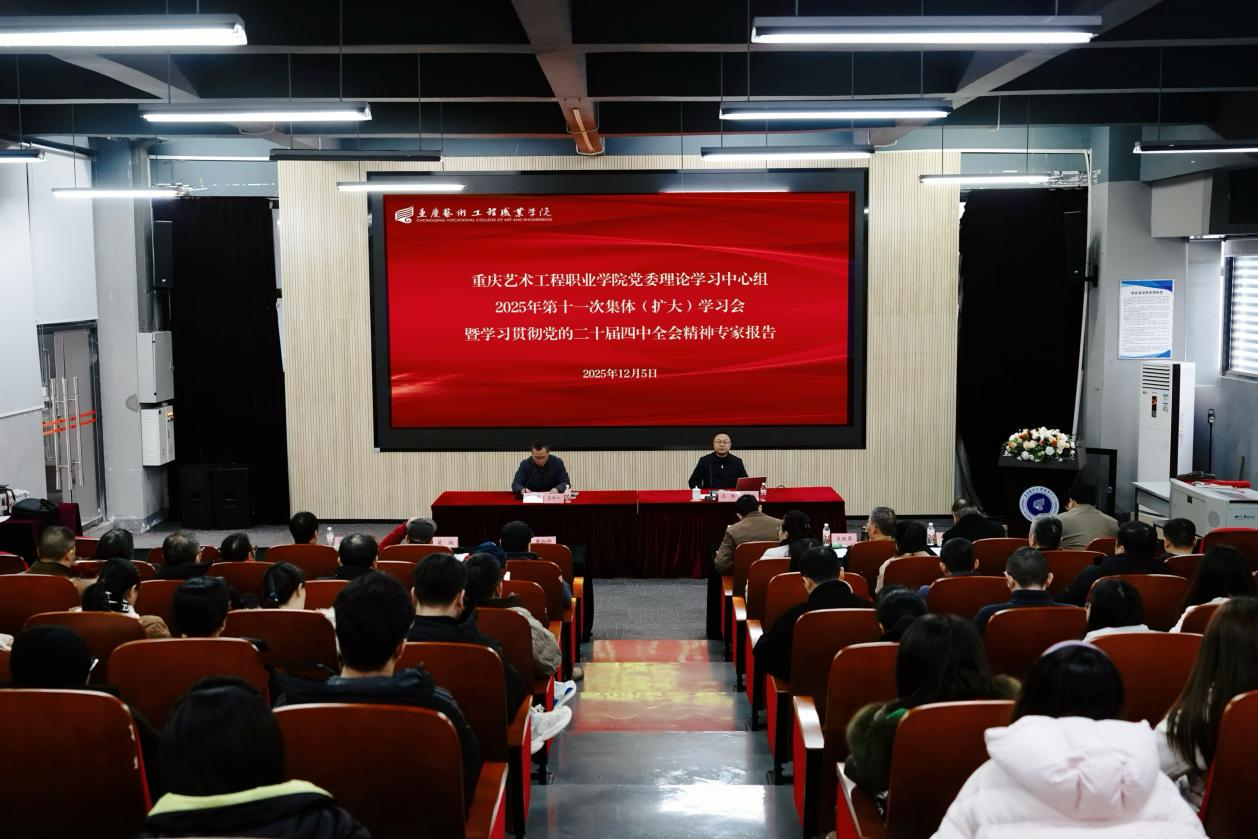 2025年12月5日,我校党委理论学习中心组在f101报告厅举行2025年第十一次集中(扩大)学习会暨学习贯彻党的二十届四中全会精神专家报告会。会议由校党委书记唐加祥主持,全体党委委员参会,非党员校领导,组织、宣传统战部负责人,基层党组织书记、委员,全体中层干部及党员教职工代表列席。