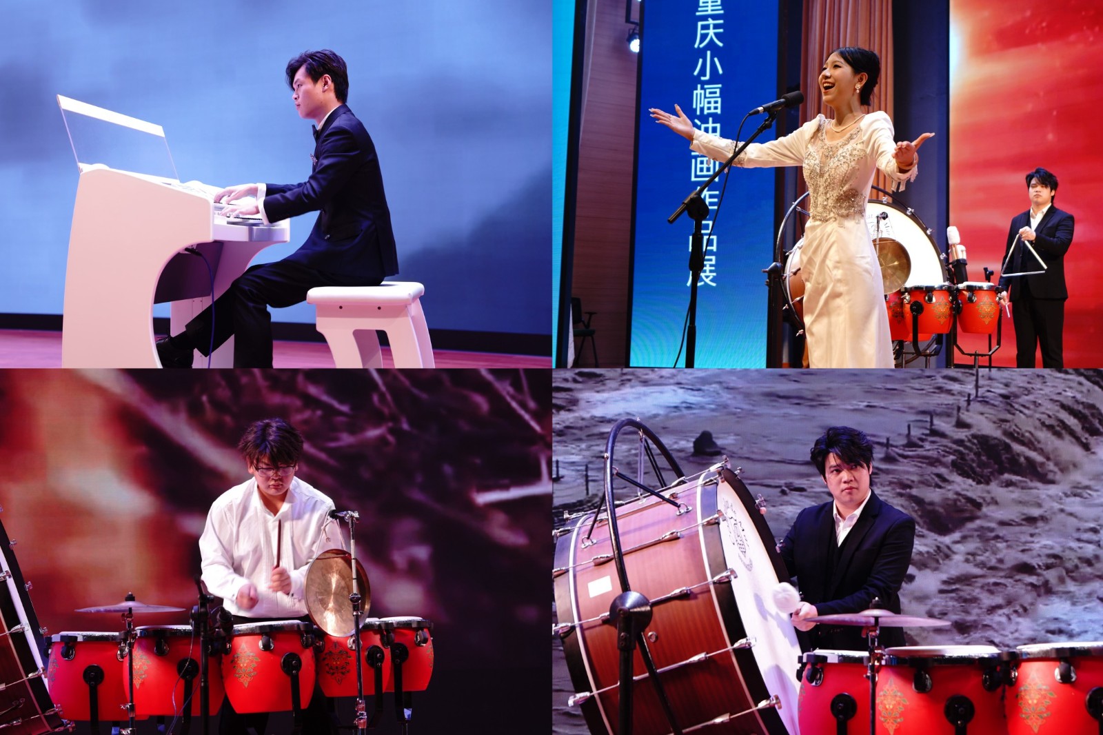 开幕式前,我校音乐与表演学院同学们带来了精彩的表演。他们演唱、演奏了《保卫黄河》,《我爱你中国》《祖国我不会忘记》《391高地》等,脍炙人口的经典乐曲和歌曲,激昂的旋律搭配深情的演绎,瞬间点燃了现场的气氛,将爱国主义正能量展现的淋漓至尽,虽然是大一,大二同学,他们的表演赢得了全场嘉宾的热烈掌声与高度赞誉。音表学院二十余位空乘专业的同学,为此次活动的颁奖、引导等工作付出了辛勤的劳动,为活动增添了一道特殊的风景线。