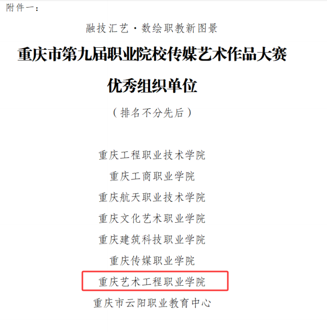 近日,重庆市第九届职业院校传媒艺术作品大赛获奖名单揭晓。我校师生凭借扎实的专业功底、独特的创意与出色的实践能力,在比赛中脱颖而出,喜获丰收。