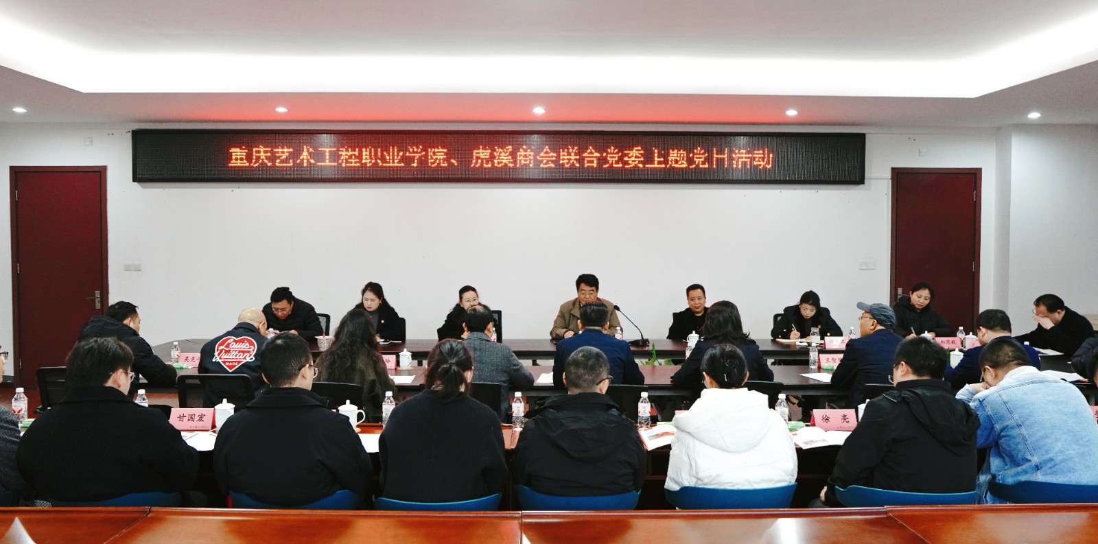 会议伊始,与会人员共同观看了我校的宣传片,对学校的发展历程、办学特色和成果有了初步了解。紧接着,许世虎副校长从校企合作、产教融合等多个维度,向参会人员详细介绍了学校的基本情况。随后,滕健书记就虎溪商会联合党委的组织架构、发展历程以及主要工作情况进行了全面且细致的介绍。