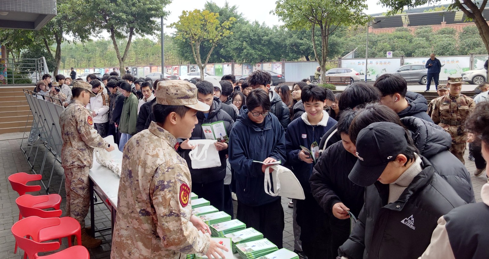 为进一步做好大学生征兵工作,增强青年学生国防意识,2025年12月25日上午10点,铜梁区人民武装部到我校开展征兵宣传活动。国防班全体成员以及师生代表参加此次活动。