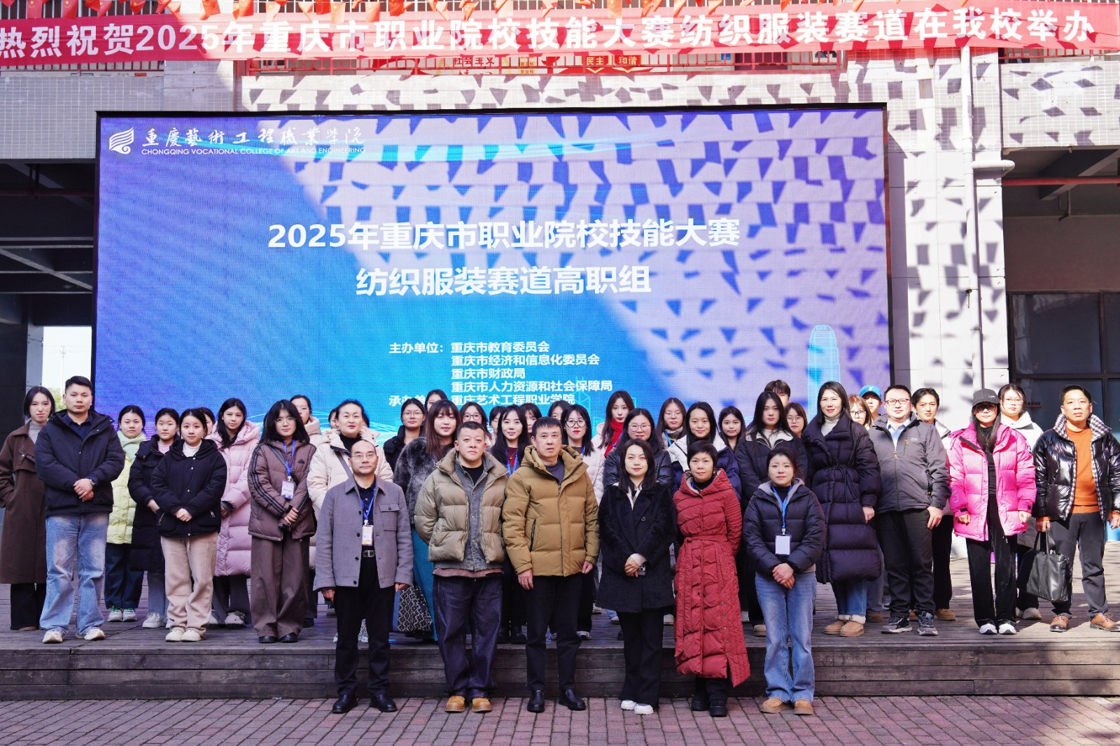 2025年1月6日至7日,2025年重庆市职业院校技能大赛高职组纺织服装赛项,在我校盛大举行。此次大赛由重庆市教育委员会主办,重庆艺术工程职业学院承办,旨在搭建职业教育与产业需求紧密对接的桥梁,全面提升学生的专业技能与实践能力,为蓬勃发展的纺织服装行业源源不断地输送高素质技术技能人才。