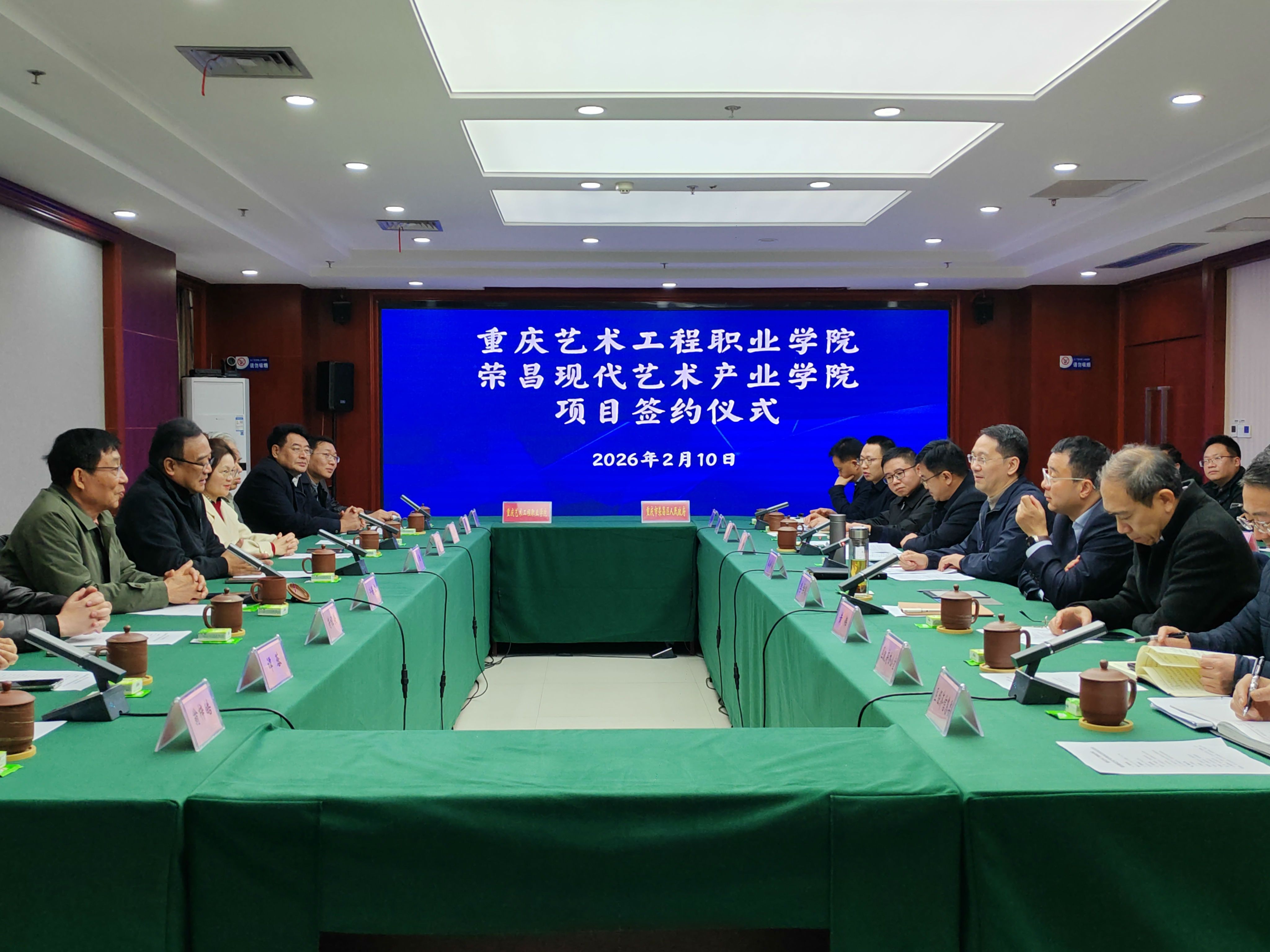2026年2月10日上午,重庆艺术工程职业学院与重庆市荣昌区人民政府在区行政中心举行合作签约仪式,共同成立“荣昌现代艺术产业学院”。