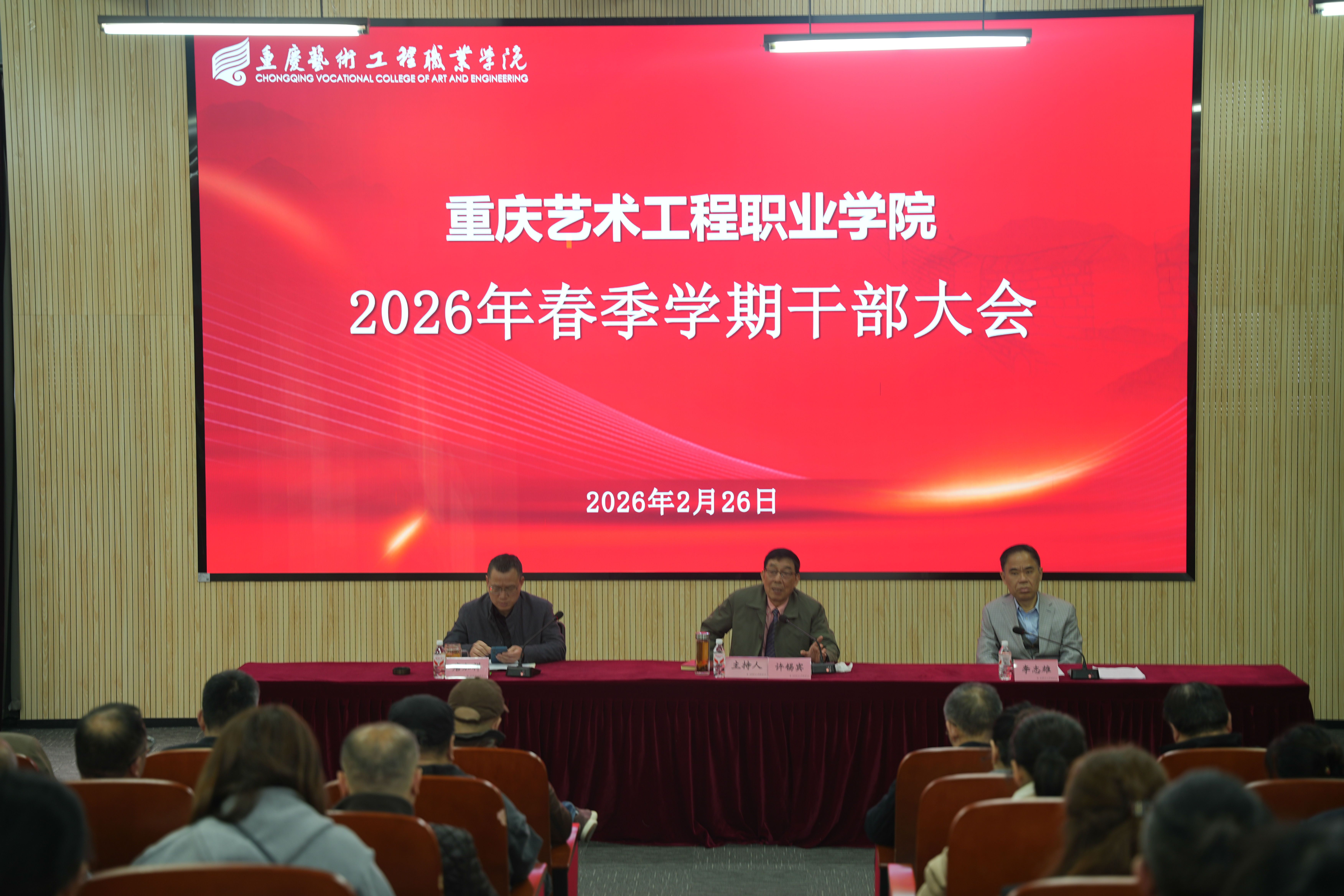 2月26日上午,重庆艺术工程职业学院2026年春季学期干部大会在F101小报告厅举行。全体校领导、各部门负责人、基层党组织书记和科级以上干部参加会议。会议由校长许锡宾主持。