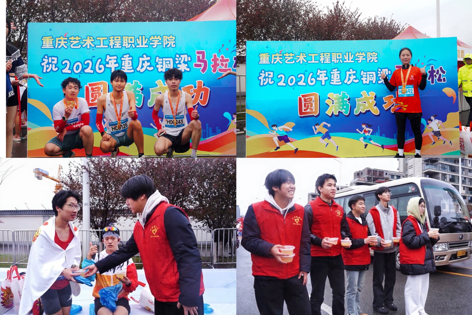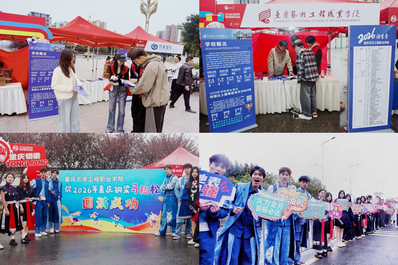 3月15日,2026铜梁马拉松鸣枪开跑。作为赛事赞助单位,我校充分发挥艺术类职业院校特色,在赛事沿线设置招生宣传点、加油站、服务点,组织师生志愿者团队全程参与服务保障,用专业与热情为赛事增添一抹亮丽的艺术色彩。