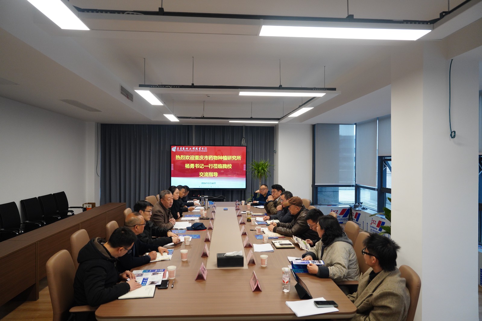 继3月9日我校赴重庆市药物种植研究所考察调研后,为进一步推进校所合作落地,3月16日,重庆市药物种植研究所党委书记杨勇带队莅临我校交流。我校党委书记唐加祥,副校长梁挺、许世虎等领导热情接待并陪同交流。