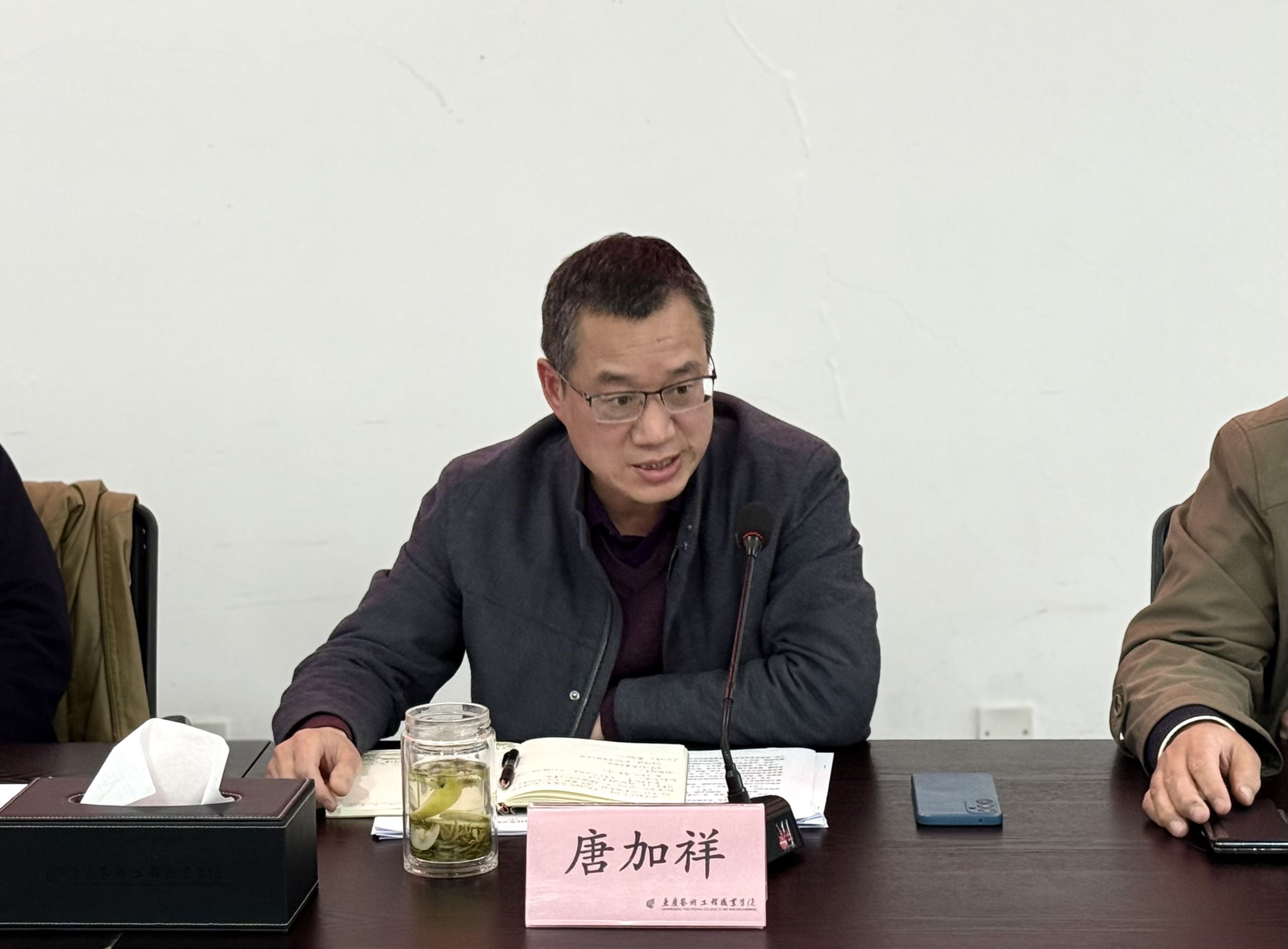 党委书记唐加祥指出,学校双高建设一是要提高政治站位,将“双高计划”建设作为引领学校高质量发展的“牛鼻子”工程,紧扣 “十五五” 战略机遇,锚定办学能力高水平、产教融合高质量,落实立德树人根本任务。二是要聚焦关键任务,强化党建引领,以党建联盟、样板支部建设为抓手,把支部建在校企合作项目上,深化政校行企协同,破解重点难点问题,打造标志性成果。三是强化责任担当,压实责任作风,无比要细化任务清单、责任到人,将建设成效纳入考核,弘扬工匠精神、力戒形式主义,确保年度目标圆满完成,全力迈向重庆领先、全国知名的职业技术大学。