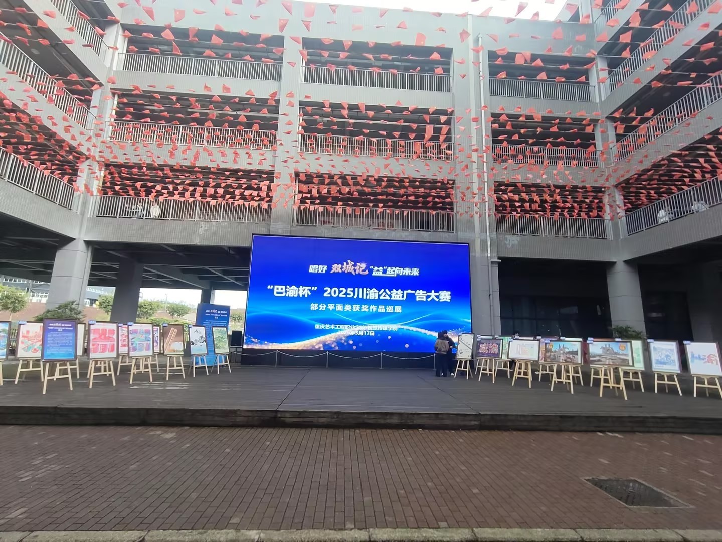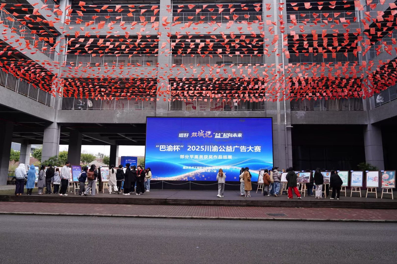 3月18日,“唱好双城记,‘益’起向未来”——“巴蜀杯”2025公益广告大赛平面类获奖作品巡展,按组委会的安排首站在我校展出。大赛和展览由中共重庆市委宣传部、中共四川省委宣传部等单位联合指导,我校视觉传媒学院承办首场巡展,展出时间为期五天。