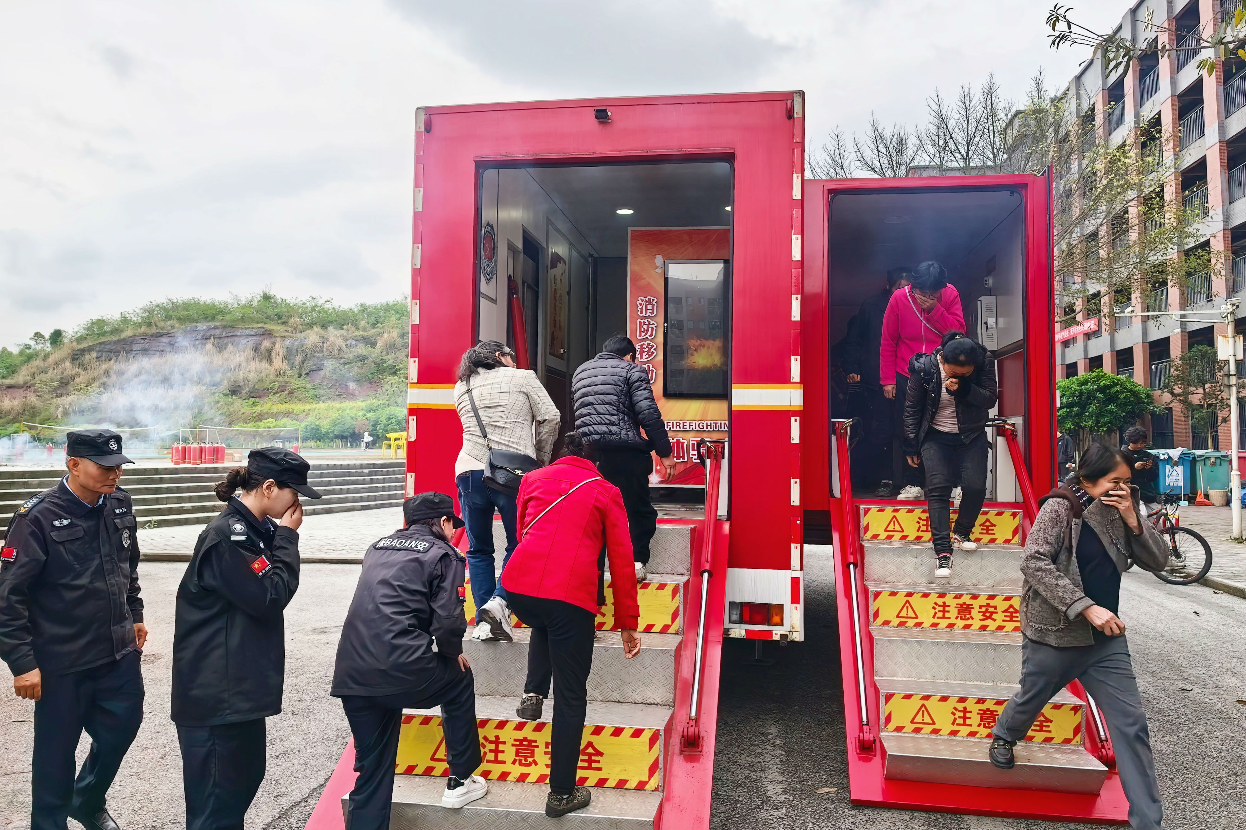 本次消防宣传活动的亮点,是铜梁区消防救援局消防宣传车带来的沉浸式“火灾逃生体验系统”。在消防员专业指导下,师生员工踊跃参与,依次进入模拟浓烟弥漫、光线昏暗的“火场”环境,亲身体验火灾现场的紧张与危险,在实践中熟练掌握低姿弯腰、捂口鼻、沿疏散指示标志有序撤离等正确逃生技能。参与体验的师生员工纷纷表示,沉浸式体验直观深刻,比单纯理论学习更具实效,能切实掌握应急逃生方法,遇到突发情况可冷静应对,活动实用性强、意义重大。