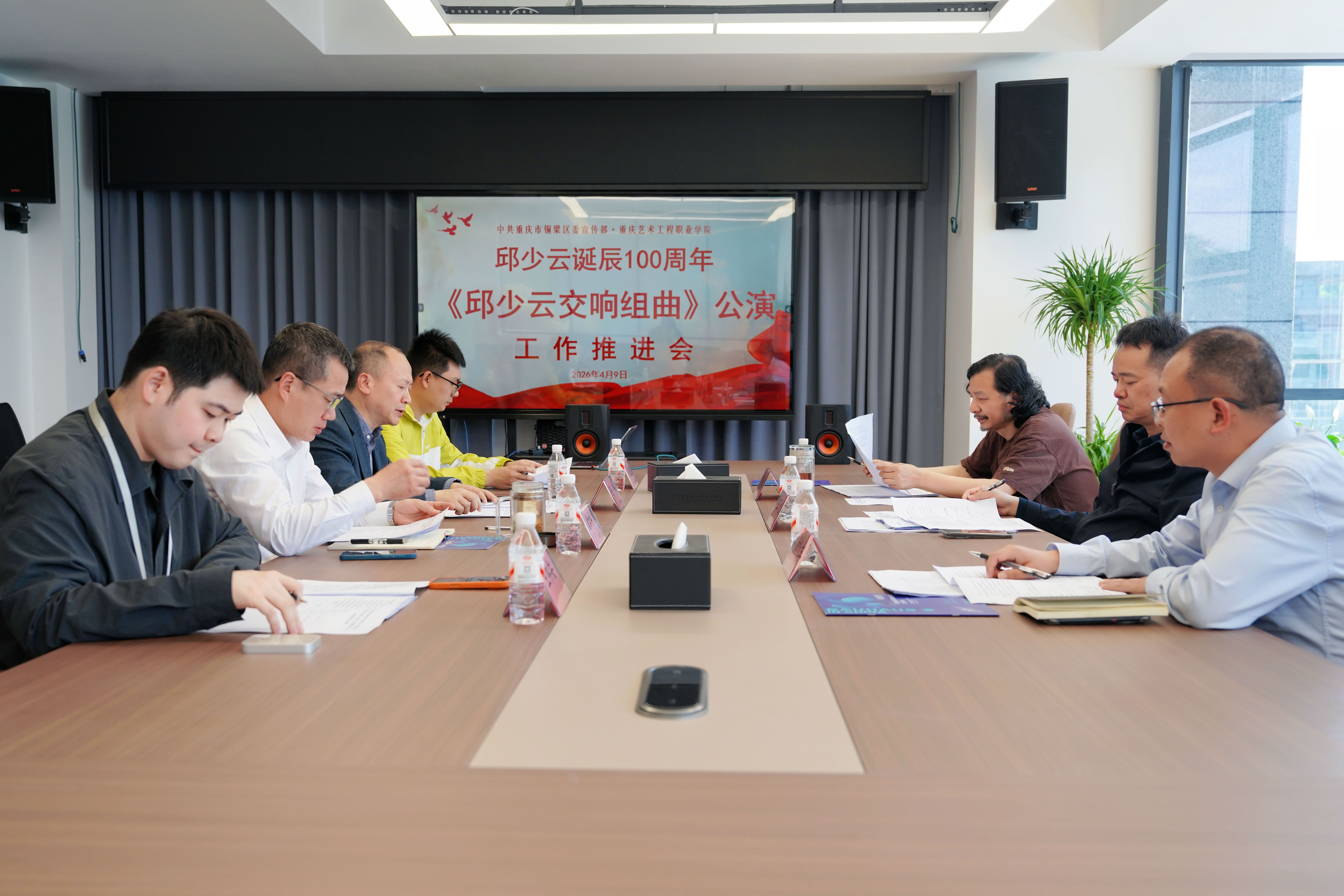4月9日下午,中共重庆市铜梁区委宣传部与我校在综合楼208会议室联合召开邱少云诞辰100周年《邱少云交响组曲》公演工作推进会。区委常委、宣传部部长王小波,副部长涂伟生,区音乐家协会主席刘敏;我校党委书记唐加祥,音乐与表演学院院长孙伟、副院长王伟安及教师代表张来宝出席会议。
