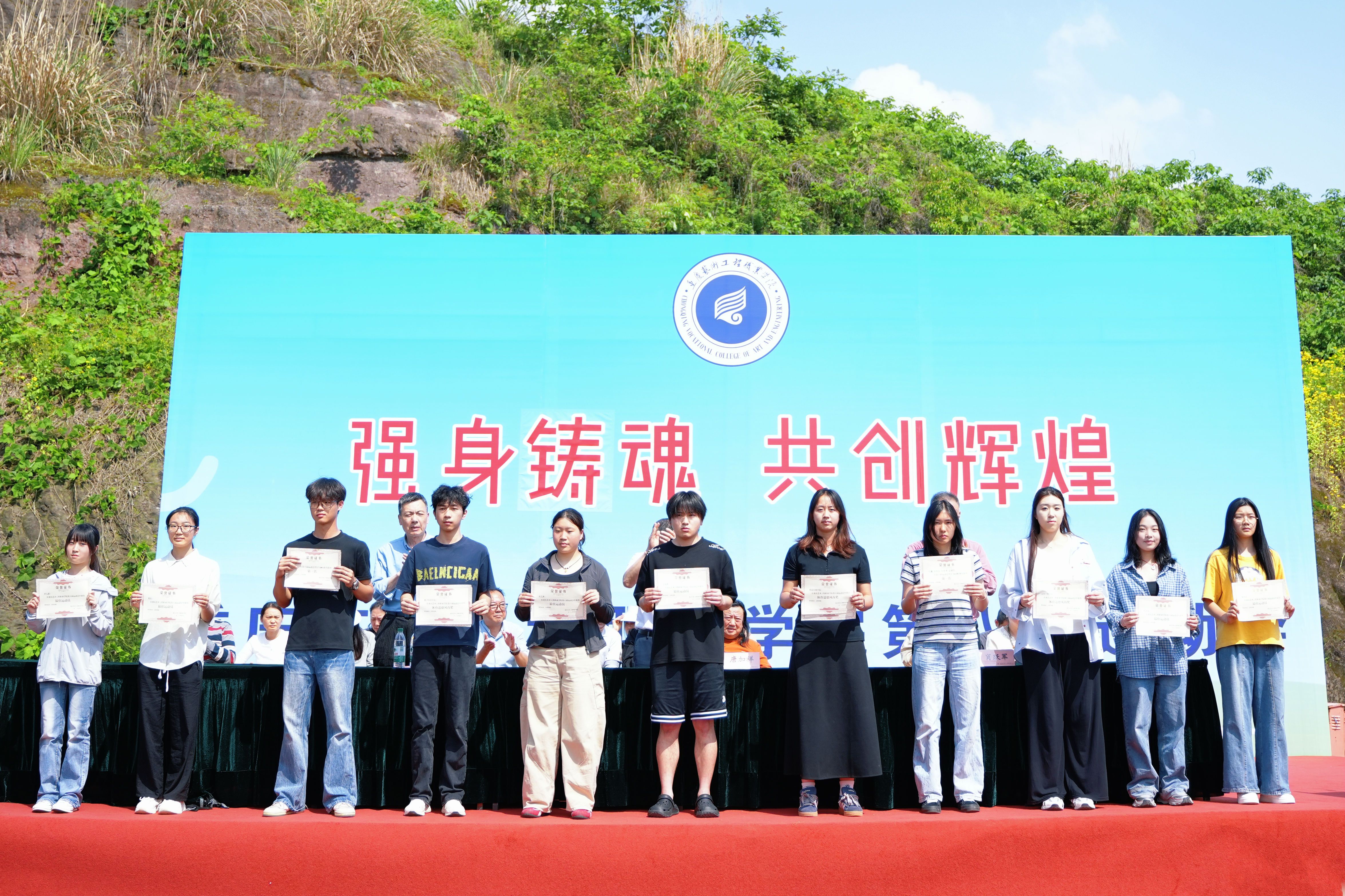 2026年4月18日下午,重庆艺术工程职业学院第八届运动会闭幕式暨颁奖仪式在学校运动场举行。党委书记唐加祥,副校长肖跃军、叶荫等出席,各职能部门、二级学院负责人及运动员、裁判员、师生代表参加,仪式由学生处处长陈小昌主持。